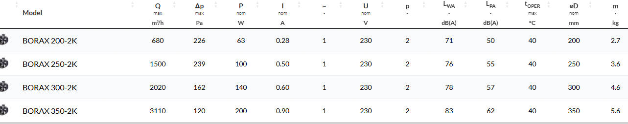 BORAX Yuvarlak Aksiyel Kanal Fanı Fan Bileşenleri ve Malzeme Özellikleri Kasa ve pervane elektrostatik toz boyalı sac metalden, koruyucu tel kafes kaynaklı çelikten elektrostatik toz boyalı olarak imal edilmiştir. Motor ve fan pervanesi ana gövdeye çelik taşıyıcılarla bağlıdır. Kapalı yapıya sahip dıştan rotorlu motora sahiptir. Avantajları İdeal kanat açıları sayesinde küçük boyutlarına rağmen yüksek hava debilerine minimum ses seviyelerinde ulaşırlar. Yuvarlak kanala kolayca monte edilebilir. Hız Kontrolü Opsiyonel kontrol cihazları ile sağlanabilir. * Lineer voltaj regülatörü ile hız kontrolü yapılabilir. (bkz. BSC aksesuarı) Kullanım Alanları BORAX aksiyel kanal fanları yaşamsal ve endüstriyel alanlarda havalandırma, yer sınırlamasına karşın yüksek hava debilerine ihtiyaç duyulan uygulamalar için idealdirler. Makine imalatçıları tarafından da hava sirkülasyonu amaçlı kullanılır.