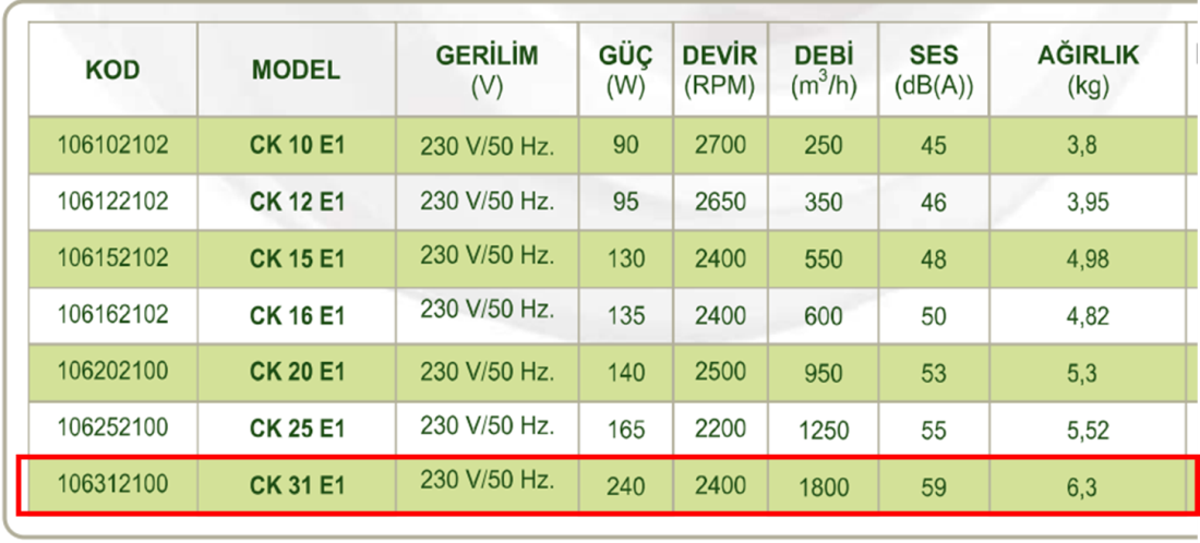 DÜNDAR 31.5 cm çapında CK 31 E1 3000 D/D 230 volt Monofaze Yuvarlak Kanal Fanı Firmamız DÜNDAR CK Serisi Yuvarlak Kanal Fanlarının ana bayiliğini yapmaktadır. DÜNDAR CK Serisi Yuvarlak Kanal Fanları 3000 D/D, 230 volt Monofaze seçeneği ile üretilmektedirler. 220 volt Monofaze ile de çalıştırılabilmektedirler. DÜNDAR CK 31 E1 model Yuvarlak Kanal Fanına ait detaylı bilgileri yukarıdaki ürün görsellerinin yanında bulabileceğiniz gibi teknik değerler tablosuna, teknik çizim ve ölçüler tablosuna ve performans eğrisine de aşağıda ulaşabilirsiniz.